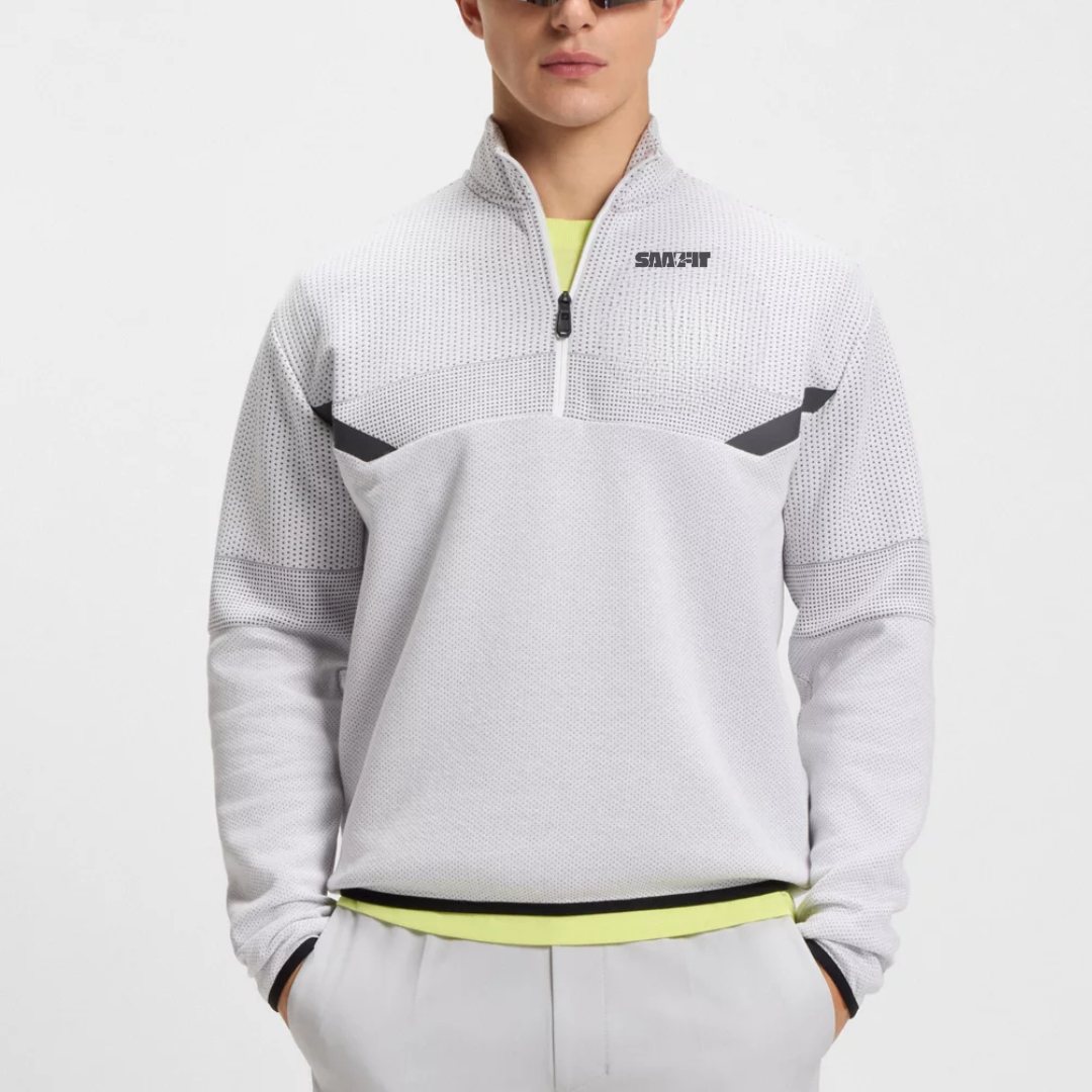 Relaxed-fit zip-neck sweatshirt with quilted jacquard