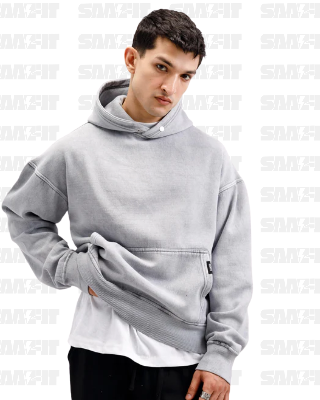Keep it effortless and stylish with the Washed Grey Essential Hoodie — a laid-back staple designed for comfort and everyday wear.